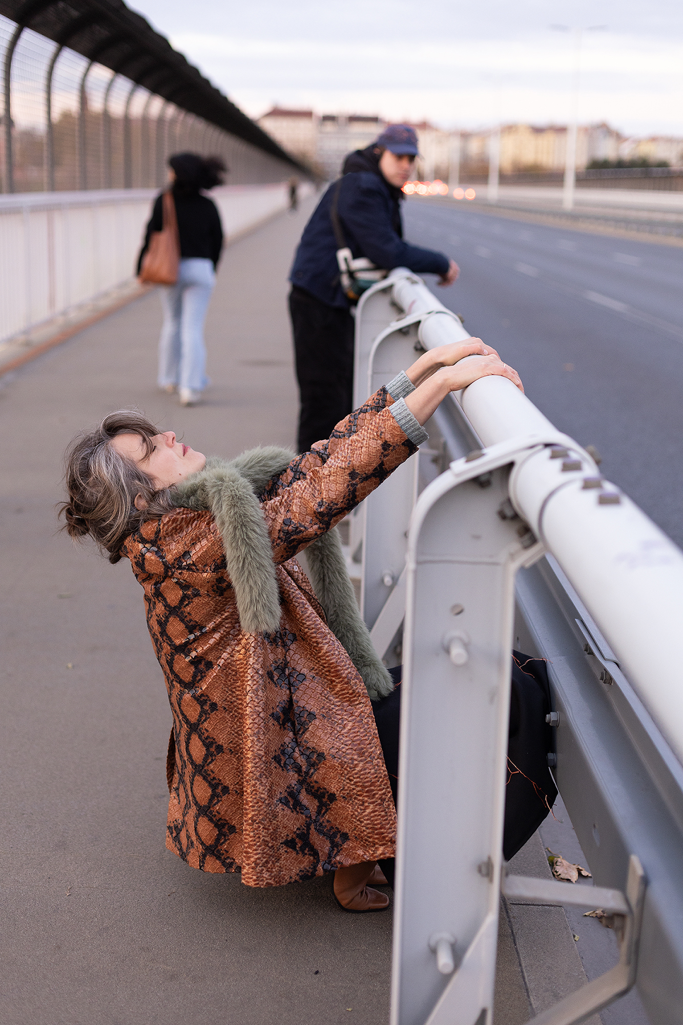 Whisper in the Valley explored the performative qualities of public transit spaces, offering a different perspective on a place marked by trauma. Through fiction and performance, it aims to highlight the care and build new connections to the space that has been deeply marked by the physical, urban impact of the Nusle Bridge, as well as its psychological and social implications. The Nusle’s bridge which connects the city, is also a site of personal loss and various transformations; its presence is linked to many suicides and social changes that have left an indelible mark on the valley. The walk was enriched by original music, field recordings, and costumes that amplified the narrative and stimulated the audience's imagination and interpretation of the story.